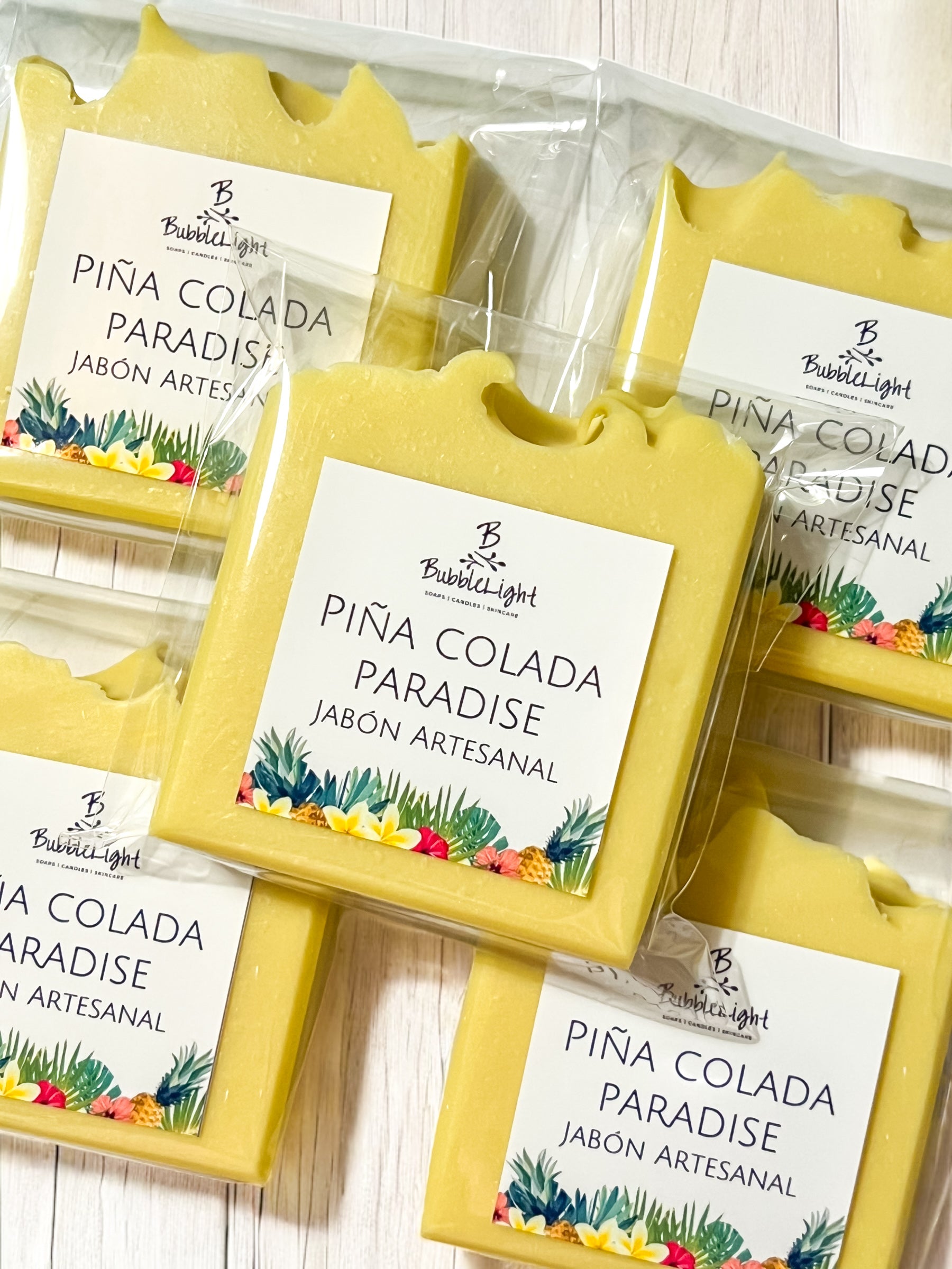 ¡Transporta tus sentidos a una isla tropical con cada baño gracias a nuestro delicioso jabón artesanal de Piña Colada! Su fragancia dulce y frutal a piña, combinada con un toque cremoso de coco, te hará sentir como si estuvieras disfrutando una piña colada bajo el sol caribeño. Con una espuma suave y cremosa, este jabón no solo te encantará por su aroma, sino también por sus beneficios para la piel