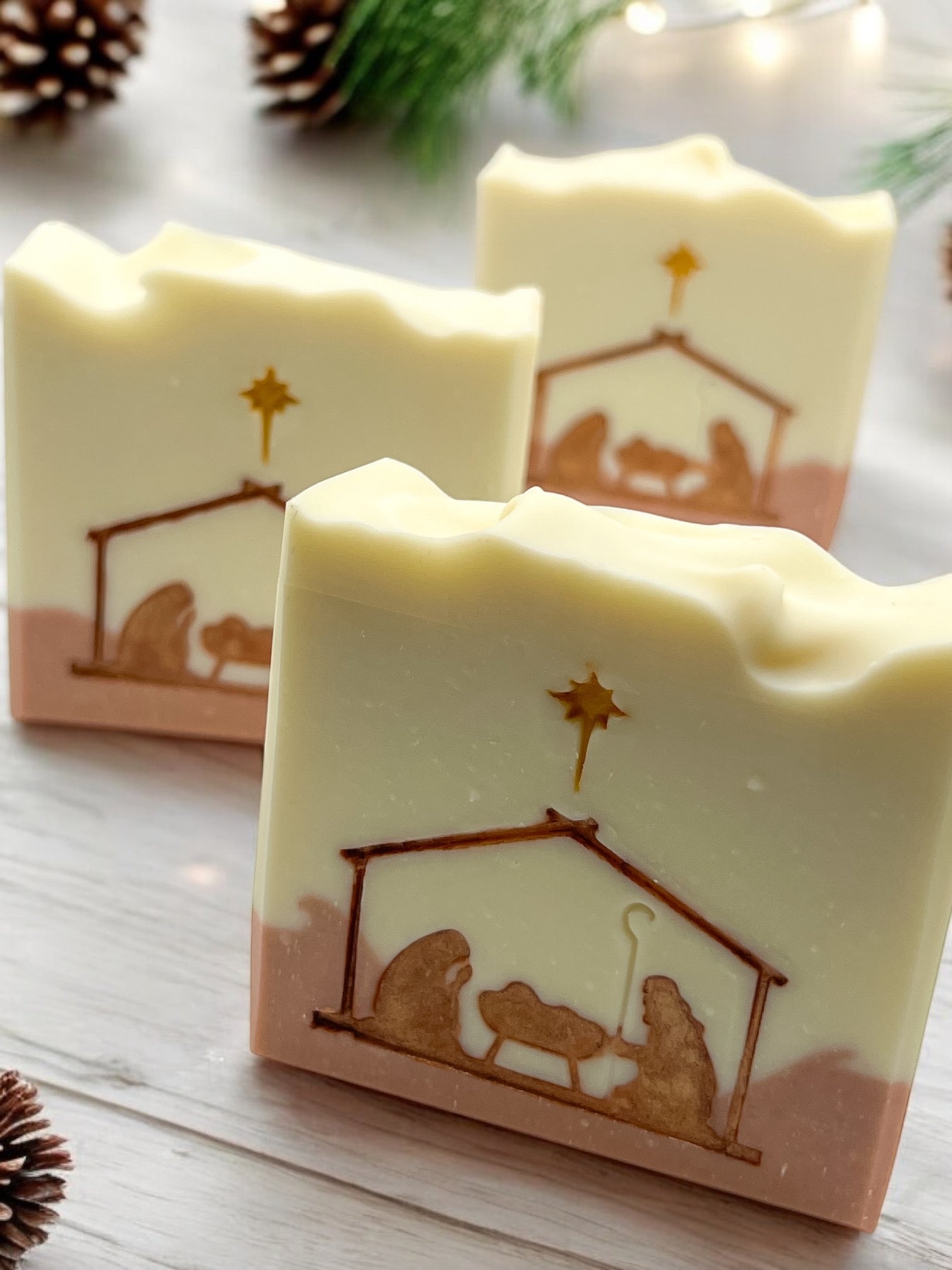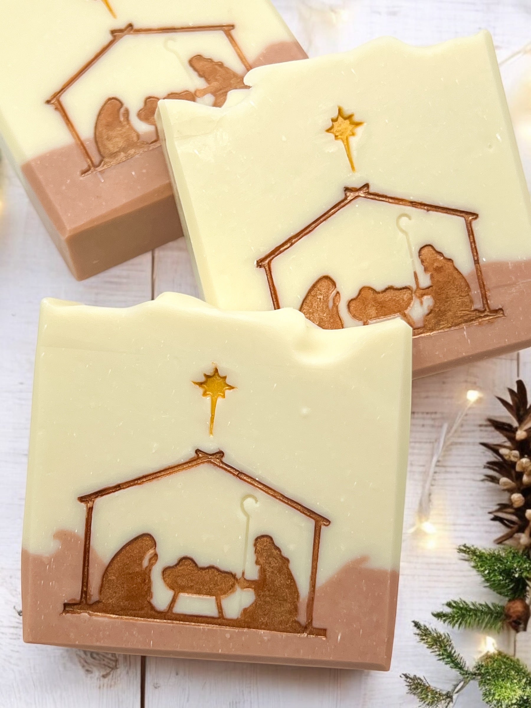 Una pieza inspirada en el milagro más hermoso: el nacimiento de Jesús en Belén. Este jabón artesanal celebra la verdadera razón de la Navidad, recordándonos la humildad del pesebre, la luz de la estrella y el amor que llegó al mundo en forma de niño.